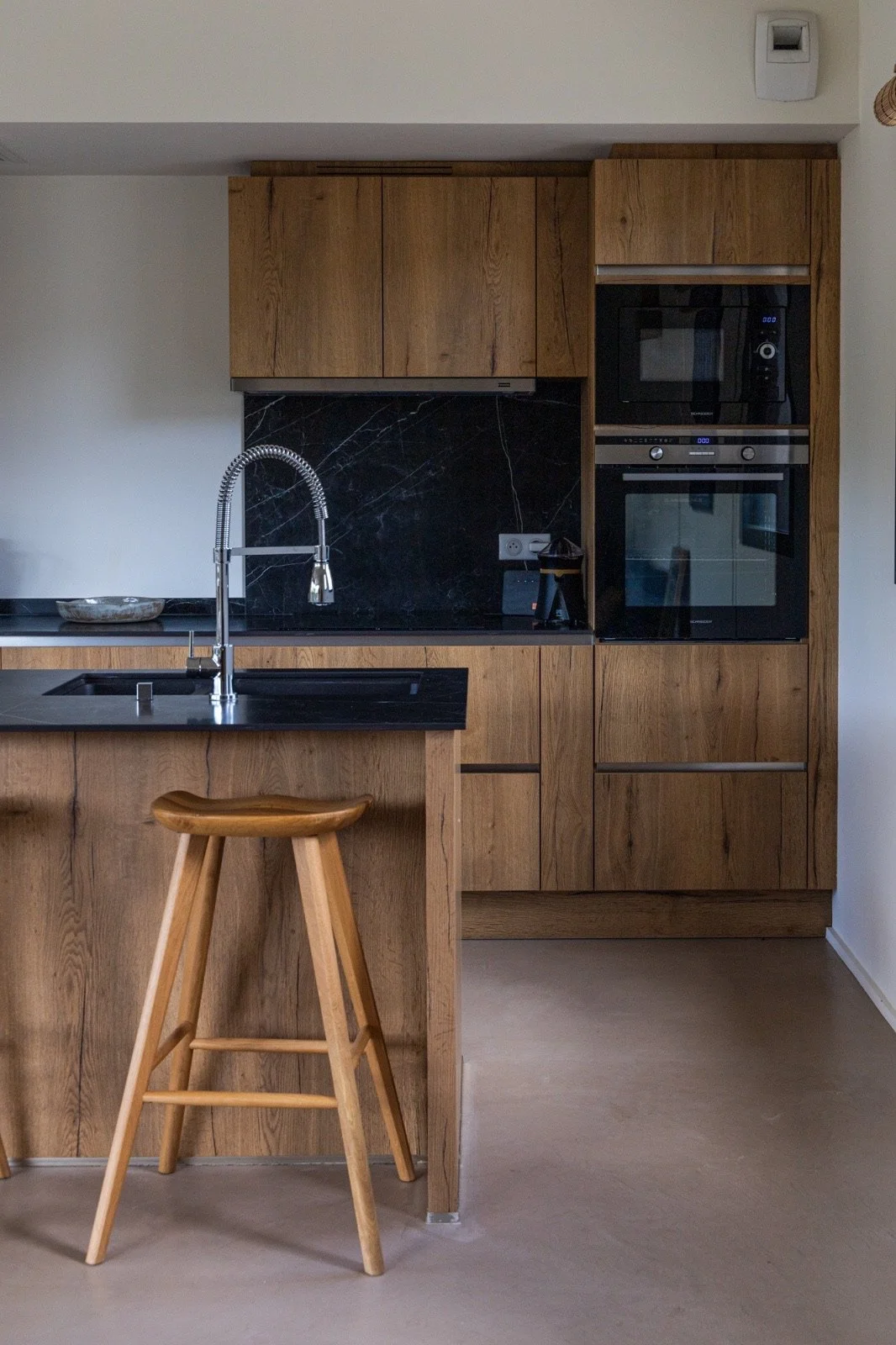 Een praktische en complete keuken waar je zonder moeite een eenvoudige maaltijd of uitgebreid diner kunt bereiden.